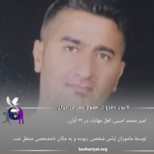 #امیر_ محمد امینی، اهل مهاباد، در ٢٩ آبان‌، در مقابل خانه‌اش توسط ماموران لباس شخصی ربوده و به مکان