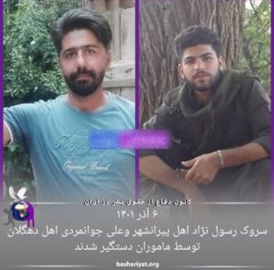 #سروک_رسول_نژاد اهل #پیرانشهر و #علی_جوانمردی اهل #دهگلان توسط ماموران حکومتی ربودە شدەاند و بە