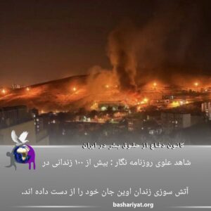 #شاهد_ علوی روزنامه نگار خبر داده است که بیش از ۱۰۰ زندانی در آتش سوزی زندان اوین جان خود را از دست