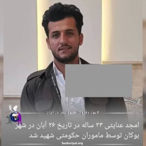 جانباختن امجد عنایتی توسط ماموران حکومتی