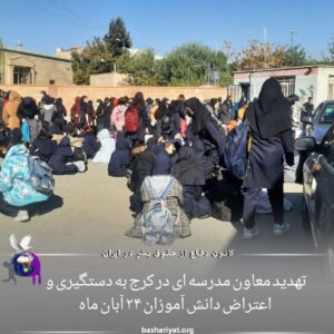 خانم میترا فتحی، معاون دبیرستان دخترانه روزنامه اطلاعات کرج، بچه‌ها رو به‌خاطر چندتا نقاشی اعتراضی