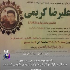 جان باختن علیرضا کریمی دانشجوی ۲۰ساله کُرد بر اثر ضربات باتوم نیروهای حکومتی
