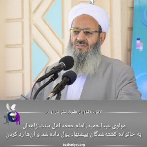 مولوی عبدالحمید: به خانواده کشته شدگان پیشنهاد پول داده شده و آنها رد کردند