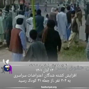 افزایش کشته‌شدگان اعتراضات سراسری به ۳۰۴نفر رسید، از جمله۴۱ کودک
