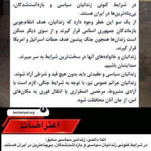 ابراز نگرانی برای زندانیان در پی ادامه جنگ