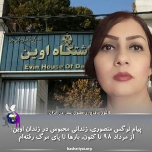 پیام نرگس منصوری، زندانی محبوس در زندان اوین:از مرداد ۹۸ تاکنون،بارها تا پای مرگ رفتم ام