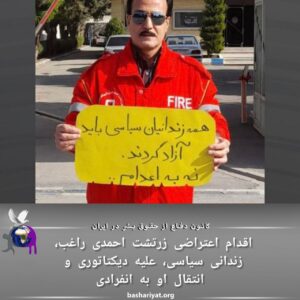 اقدام اعتراضی زرتشت احمدی‌راغب، زندانی سیاسی،علیه دیکتاتوری و انتقال او به انفرادی