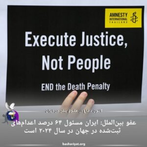 عفو‌ بین‌الملل:ایران مسول ۶۴ درصد اعدام های ثبت شده در جهان در سال ۲۰۲۴ است