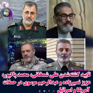 تایید کشته‌شدن علی شمخانی،محمد پاکپور،عزیز نصیرزاده و عبدالرحیم موسوی در حملات آمریکا و اسرائیل