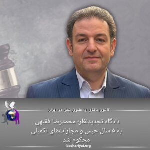 دادگاه تجدیدنظر؛محمدرضا فقیهی به ۵ سال حبس و مجازات های تکمیلی محکوم شد