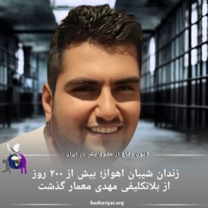 #مهدی_معمار، متهم سیاسی بیش از ۲۰۰ روز است که به صورت بلاتکلیف در زندان شیبان اهواز نگهداری میشود.