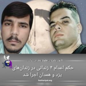 حکم اعدام ۴ زندانی در زندانهای یزد و همدان اجرا شد