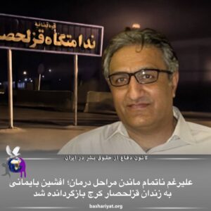 علیرقم ناتمام ماندن مراحل درمان؛افشین بایمانی به زندان قزلحصار کرج بازگردانده شد