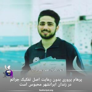 پرهام_پروری، از بازداشت شدگان اعتراضات سراسری ۱۴۰۱ به دلیل عدم رعایت اصل تفکیک جرائم، در معرض خشونت و آسیب‌های جسمی قرار دارد