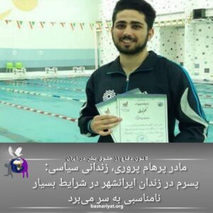 مادر پرهام پروری زندانی سیاسی:پسرم در زندان ایرانشهر در شرایط بسیار نامناسبی به سر می برد