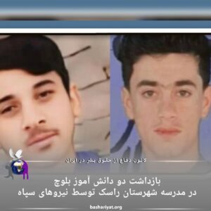 دو دانش آموز بلوچ کلاس دوازدهم در مدرسه علامه روستای فیروزآباد شهرستان راسک توسط نیروهای سپاه پس