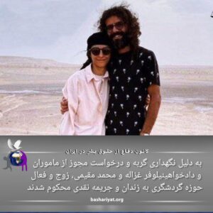 به دلیل نگهداری گربه و درخواست مجوز از ماموران و دادخواهی نیلوفر غزاله و محمدعلی مقیمی زوج فعال حوزه گردشگری به زندان و جریمه نقدی محکوم شدند