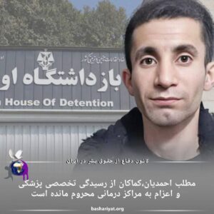 مطلب احمدیان کماکان از رسیدگی تخصصی پزشکی و اعزام به مراکز درمانی محروم مانده است