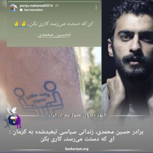 برادر حسین محمدی ،زندانی تبعید شده در کرمان:ای که دستت می‌رسد، کاری بکن