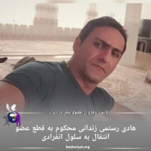 هادی رستمی زندانی محکوم به قطع عضو انتقال به سلول انفرادی