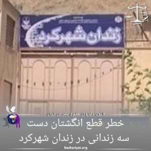 خطر قطع انگشتان دست سه زندانی در زندان شهر کرد