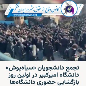 تجمع اعتراضی دانشجویان دانشگاه امیرکبیر در نخستین روز بازگشایی و هم‌زمان با چهلم جان‌باختگان اعتراضات دی‌ماه برگزار شد