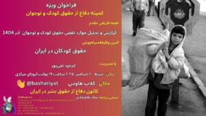 فراخوان ویژه جلسه مشترک کمیته دفاع از حقوق زنان و کمیته دفاع از حقوق کودک و نوجوان در فضای مجازی زووم در تاریخ ۲۸ ژانویه ۲۰۲۶ در ساعت ۱۵ به وقت اروپای مرکزی در ساعت ۱۷:۳۰ به وقت ایران کانون دفاع از حقوق بشر در ایران
