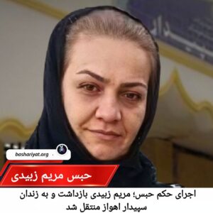 مریم زبیدی، شهروند ۵۸ ساله ساکن اهواز، روز شنبه ۱۰ آبان ۱۴۰۴ پس از مراجعه به اجرای احکام دادگاه ادامهی مطلب
