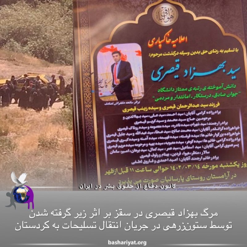 مرگ بهزاد قیصری در سقز بر اثر زیر گرفته شدن توسط ستون زرهی در جریان انتقال تسلیحات به کردستان