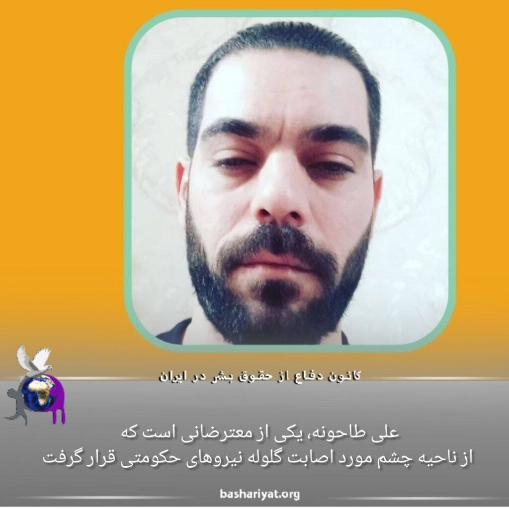 علی طاحونه یکی از معترضانی است که از ناحیه چشم مورد اصابت گلوله نیروهای حکومتی قرار گرفت