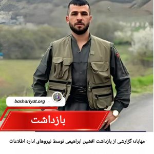 #افشین_ابراهیمی، ۲۷ ساله و اهل #مهاباد، روز شنبه ۱۹ مهر ۱۴۰۴ (۱۱ اکتبر ۲۰۲۵) توسط نیروهای #اداره_اطلاعات این شهر بازداشت و به مکان نامعلومی منتقل شد.