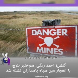 #احمد_ریگی، #سوختبر بلوچ و اهل شهرستان خاش از توابع سیستان و بلوچستان بر اثر انفجار مین کاشتهشده سپاه پاسداران جمهوری اسلامی ایران، در شهرستان گلشن جان خود را از دست داد.