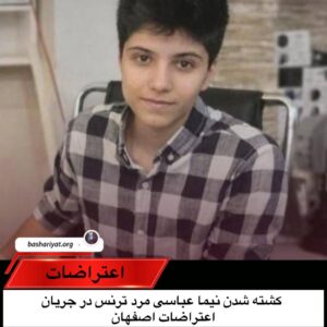 #نیماعباسی، ۲۳ ساله، مرد ترنس و اهل اصفهان، در جریان اعتراضات مردمی در این شهر، با شلیک مستقیم نیروهای حکومتی کشته شد. این دومین مرد ترنس است که در جریان اعتراضات اخیر در ایران کشته شده است.