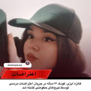 پنجشنبه ۱۸ دیماه ۱۴۰۴، #فائزه_ایزی، کودک ۱۶ساله ساکن #سبزوار از توابع استان خراسان رضوی، در جریان اعتراضات مردمی در این شهر بر اثر اصابت ضربات متعدد و شدید باتوم توسط نیروهای سرکوبگر حکومتی و خونریزی ناشی از آن #کشته شد.
