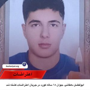 #ابولفضل_دهقانی، جوان ۱۸ ساله کورد و اهل بیجار، در جریان اعتراضات ۱۸ دیماه ۱۴۰۴ با شلیک مستقیم نیروهای سرکوبگر حکومتی کشته شد.پدر این جوان پاکبان اداره شهرداری بوده و نهادهای حکومتی وی را ناچار کردهاند تا فرزندش را به عنوان عضو بسیج معرفی کند.
