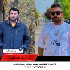 دو شهروند گیلک به نامهای #مجتبی_قربانی و #بهرام_زاهدی، هر دو اهل #رشت از توابع استان گیلان در جریان اعتراضات مردمی در این شهر توسط نیروهای حکومتی جمهوری اسلامی ایران با شلیک مستقیم گلوله جنگی کشته شدند.