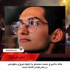 #خالدملایی، دانشجوی اهل #لارستان از توابع #استان_فارس و یک شهروند دیگر به نام #محمدمحمدلو با شلیک مستقیم نیروهای جمهوری اسلامی ایران در جریان اعتراضات بندرعباس با تیراندازی مستقیم نیروهای حکومتی کشته شدند.