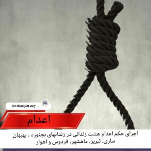 🛑 گزارشی از اجرای حکم #اعدام هشت زندانی در زندانهای #بجنورد، #ساری، #بهبهان، #تبریز، #ماهشهر، #فردوس و #اهواز