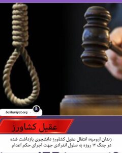 🛑 #زندان_ارومیه؛ انتقال #عقیل_کشاورز دانشجوی #بازداشت شده در جنگ ۱۲ روزه به سلول انفرادی جهت اجرای حکم #اعدام