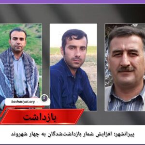 با بازداشت دو شهروند کورد اهل پیرانشهر به نامهای #هژارتورجی و #رزگارخوانپایه، شمار بازداشتشدگان توسط نیروهای حکومتی در این شهرستان به چهار نفر افزایش پیدا کرد.