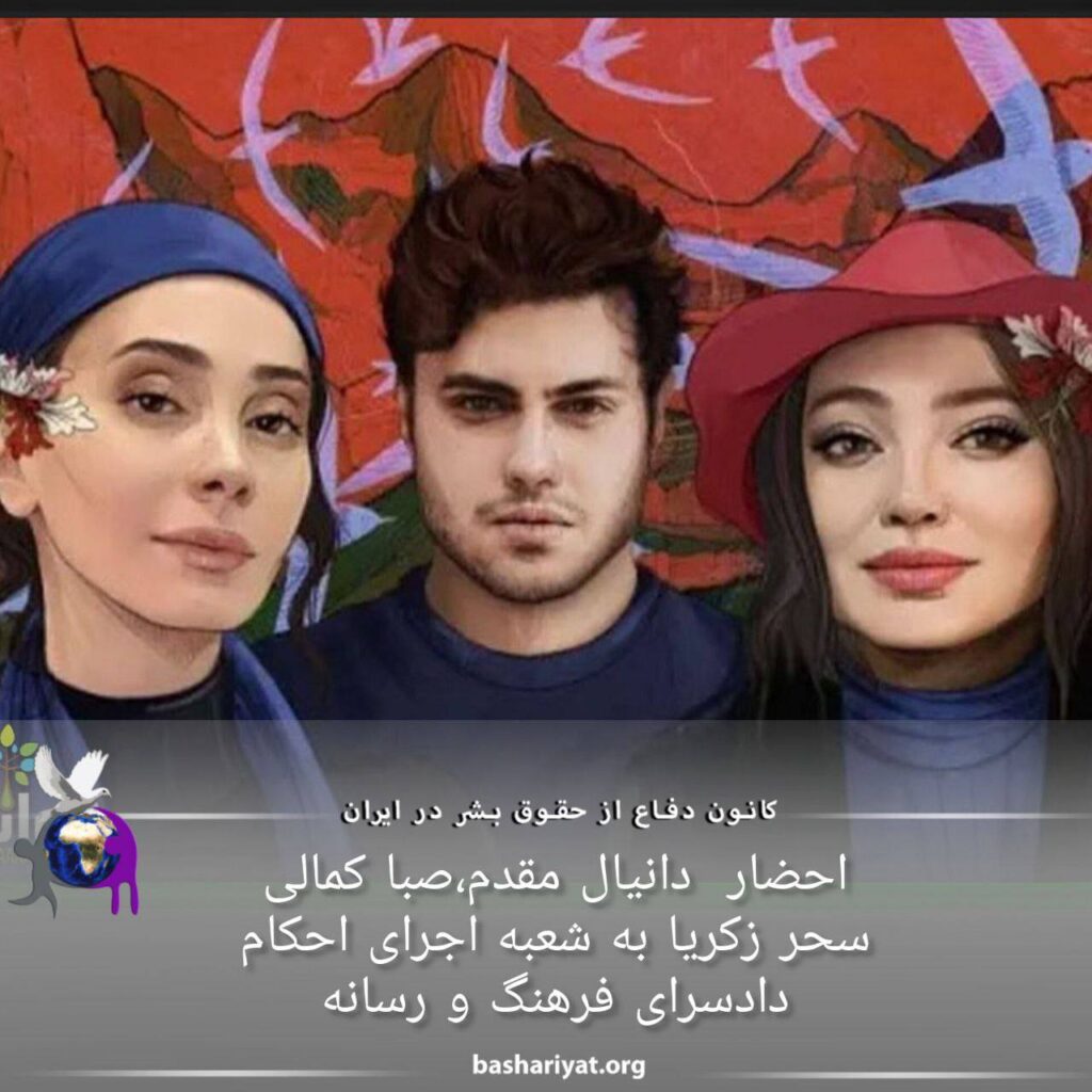 احضار دانیال مقدم ،صبا کمالی، سحر زکریا به شعبه اجرای احکام دادسرای فرهنگ و رسانه