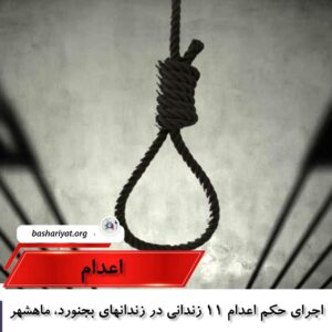 حکم اعدام ١١ زندانی از جمله سه زندانی گیلک و سه زندانی لُر، با اسامی #علی_شاملو، #کبیر_محمودوند، #یاسر_جهان_تیغ، #محمد_قهرمانی، #ساسان_شیخی، #منوچهر_نوابی، #سعید_خوش_کلام، #محمد_سوری، #شهرام_میرزاده، #فردین_رضایی و #حبیب_فریدی کە پیشتر توسط دستگاه قضایی جمهوری اسلامی ایران به اعدام محکوم شده بودند، در زندانهای بجنورد، ماهشهر، ساری، فردوس، بهبهان، تایباد، رشت و اصفهان اجرا شده است.