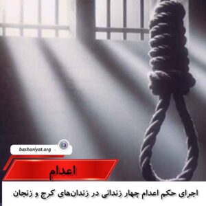 حکم اعدام چهار زندانی ازجمله یک تبعه افغانستان با اسامی #جاسم_آقای، #امید_فرخ_نژاد، #جهانگیرحصاری و #اسد_پیرباب، در زندانهای کرج و زنجان اجرا شده است