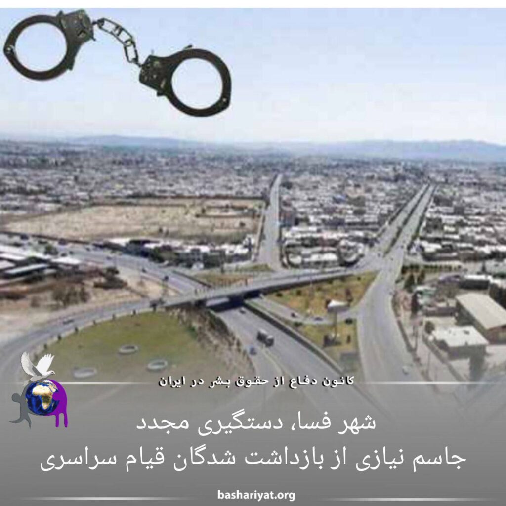 شهر فسا،دستگیری مجدد جاسم نیازی از بازداشت شدگان قیام سراسری